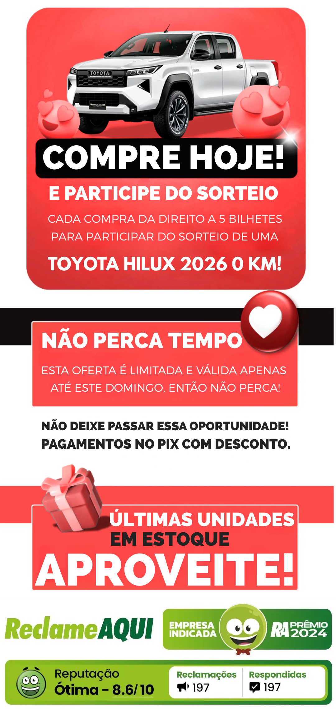Reembolso 100% do seu dinheiro em até 7 dias após o recebimento da mercadoria.